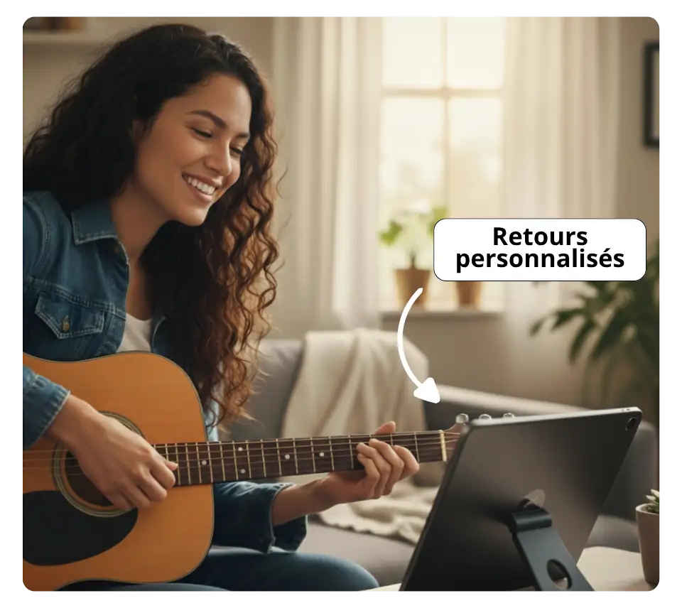 Vous n’êtes jamais seul dans votre apprentissage de la guitare. Notre équipe d’instructeurs est là pour vous aider à surmonter vos difficultés. Envoyez-nous une vidéo de votre jeu, et nous vous répondrons avec des conseils précis et des étapes pour progresser plus rapidement. Vous pouvez aussi réserver une leçon privée en visioconférence avec un de nos professeurs.